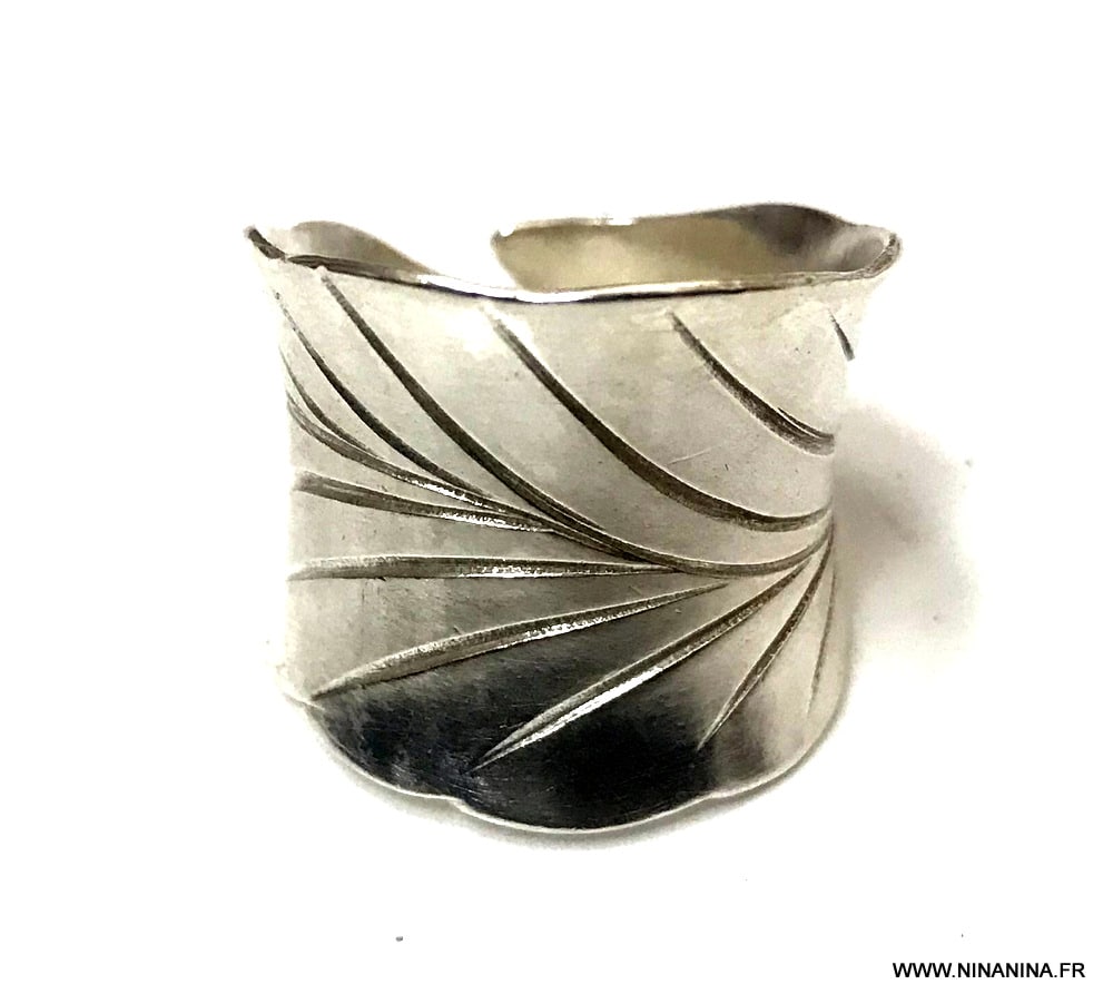 Faites refléter votre caractère et votre personnalité un brin bohème avec cette imposante Bague argent large femme réglable boheme chic qui couvre magistralement le doigt! Elle saura se faire remarquer cette Bague large evasée en argent ciselé de motifs floraux qui enlacera votre doigt avec délicatesse et robustesse!