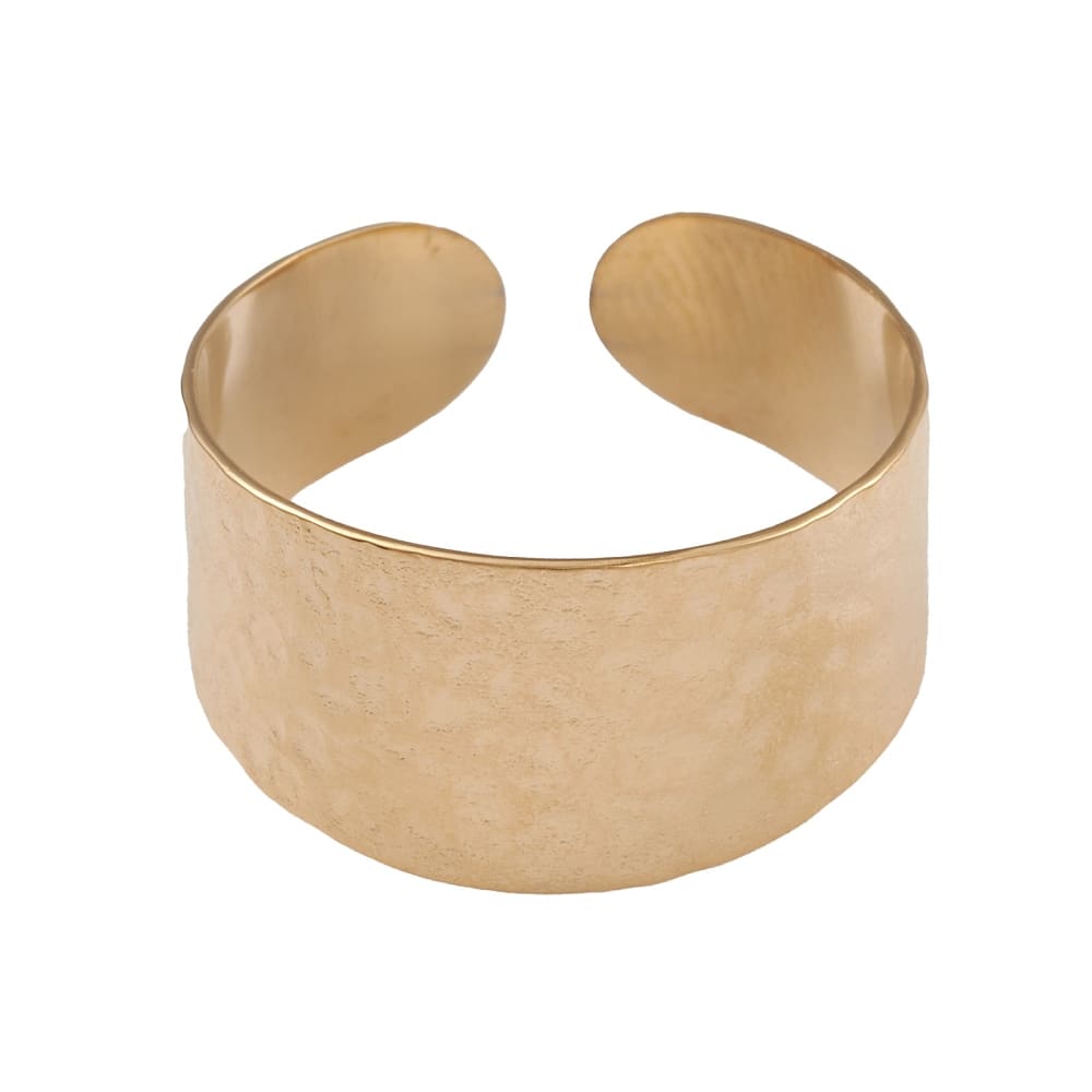L’Éclat du Martelé – Bague Dorée Large pour Femme en Acier Inoxydable