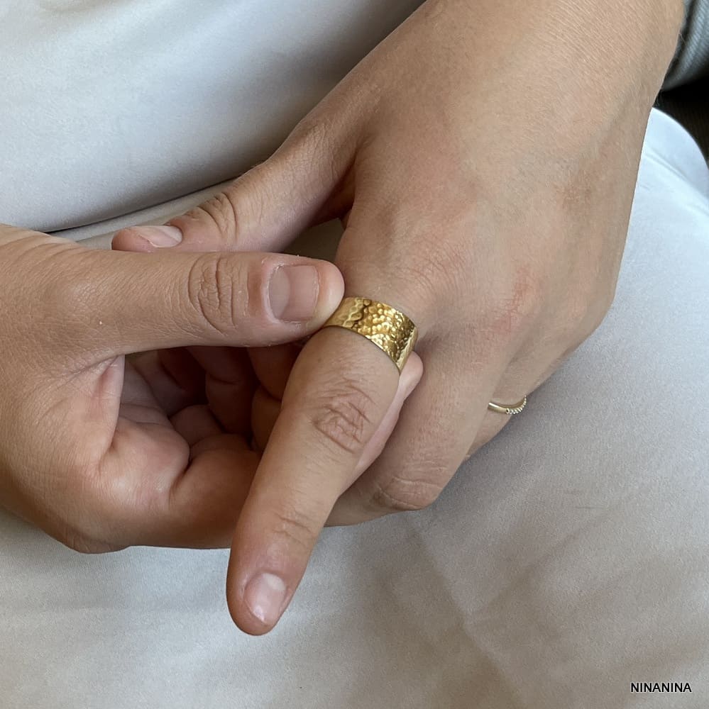 Un design unique et texturé : Le martelage apporte un relief subtil qui capte la lumière et donne à la bague un caractère artisanal et raffiné. Chaque reflet la rend vivante et élégante.