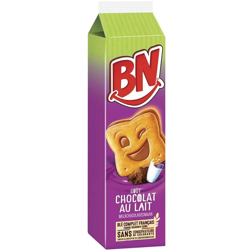 Biscuits fourrés au chocolat au lait à base de blé complet français, pour un goûter croustillant et savoureux. Sans conservateurs ni colorants.