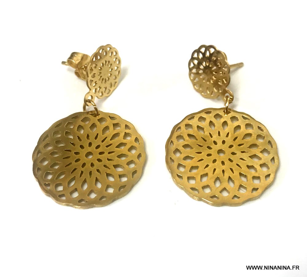 Découvrez vite ces Boucles d oreilles rond Acier inoxydable doré femme composées d’une médaille dorée montée sur une boucle clou.
