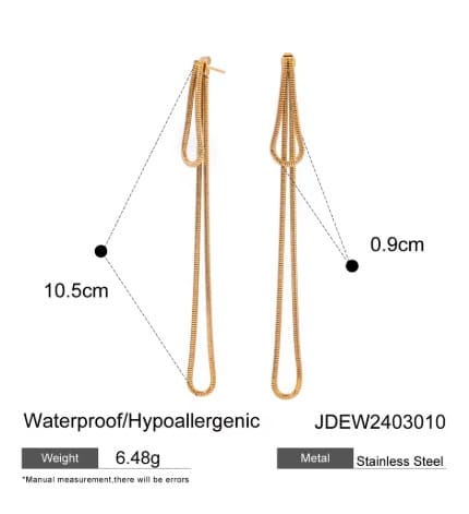 Fabriquées en acier inoxydable doré, ces Boucles d’oreilles en acier waterproof sont à la fois hypoallergéniques et résistantes à l’eau, idéales pour un usage quotidien comme pour les grandes occasions. Grâce à leur structure légère, elles restent confortables à porter toute la journée.