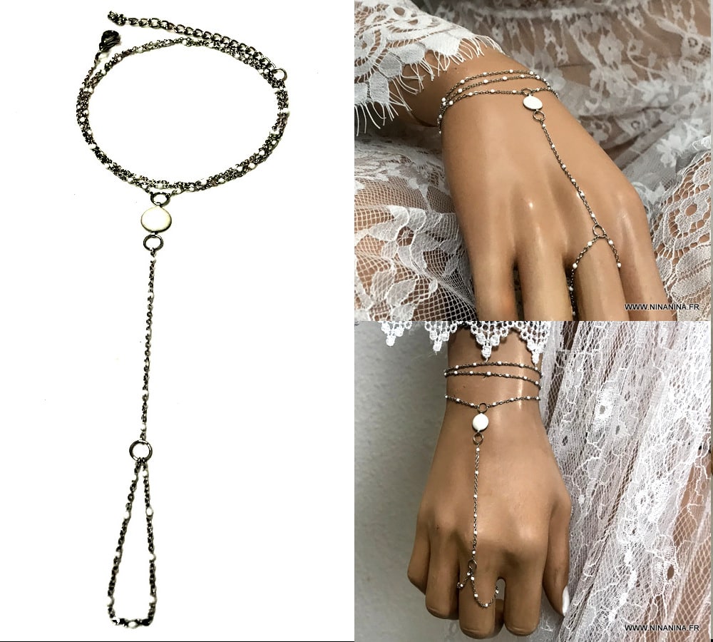 Cette jolie chaîne de main à enrouler autour du poignet, appelée également Bracelet bague est un bijou peu commun, qui peut se révéler d’une délicatesse et d’un raffinement exquis!