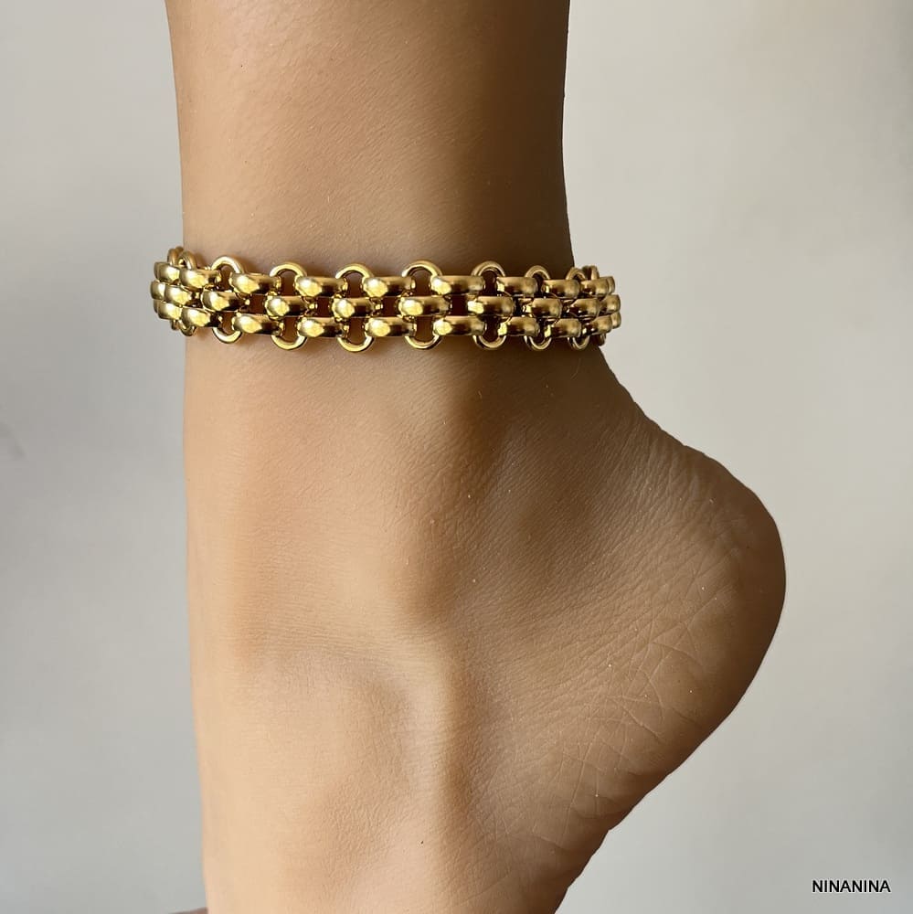 Bracelet de cheville 30 cm en acier inoxydable doré – Un bijou audacieux et raffiné