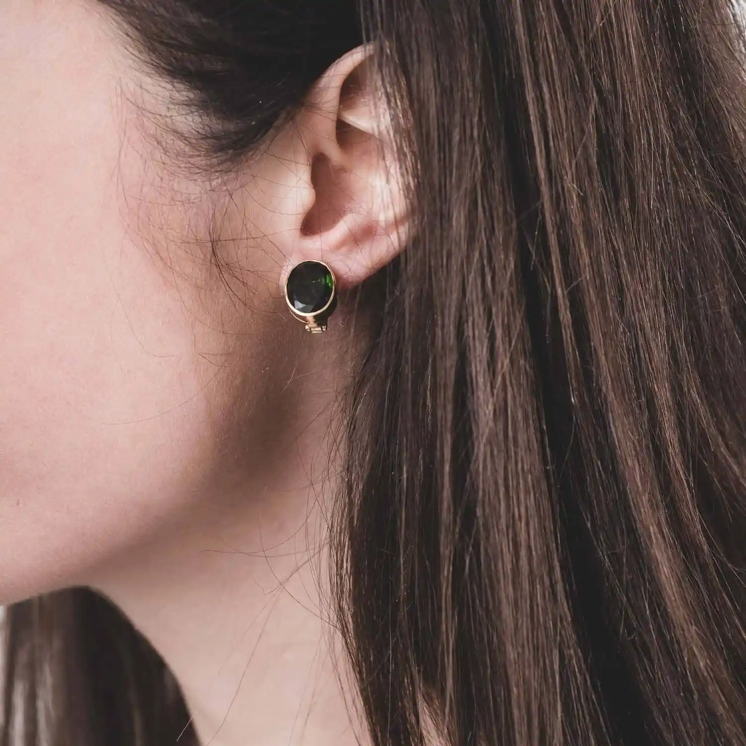 – Paire de clips d’oreilles en or deux tons 18K (750°/00) sertie pour chacune d’une verdelite taillée en ovale