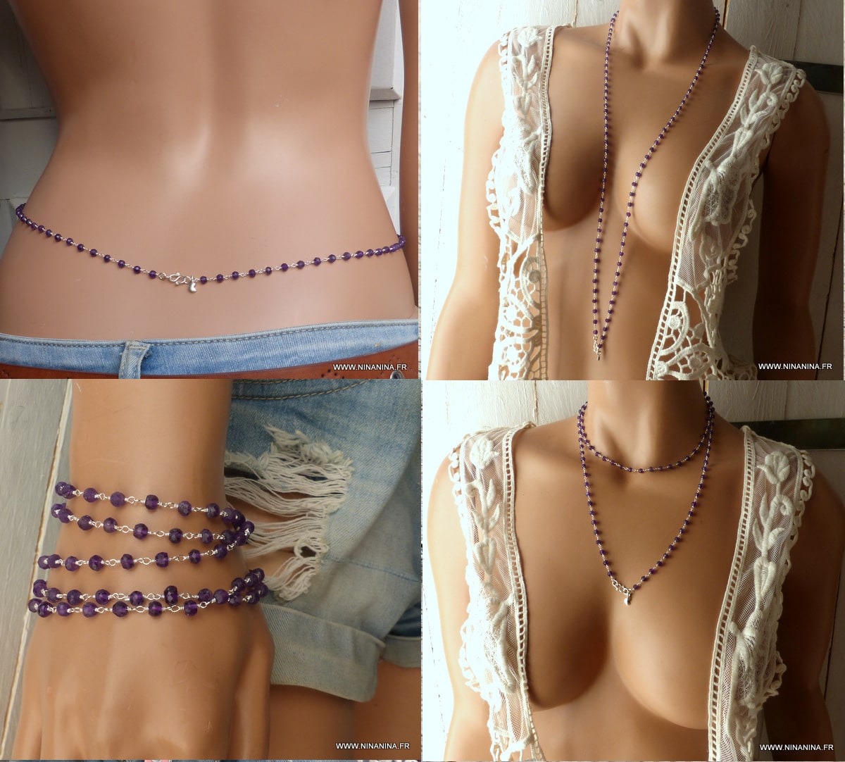 Portez ce collier Améthystes et argent long ou court (2 tours), seul pour un look minimaliste ou en superposition avec d’autres colliers Ninanina; Astuce Ninanina : Vous pouvez également l’enrouler autour de votre poignet et le transformer ainsi en bracelet multitours ultra tendance. Posé délicatement sur vos hanches, il deviendra une chaine de taille ultra sexy ! Un bijou multifonctions dont vous ne pourrez plus vous passer !