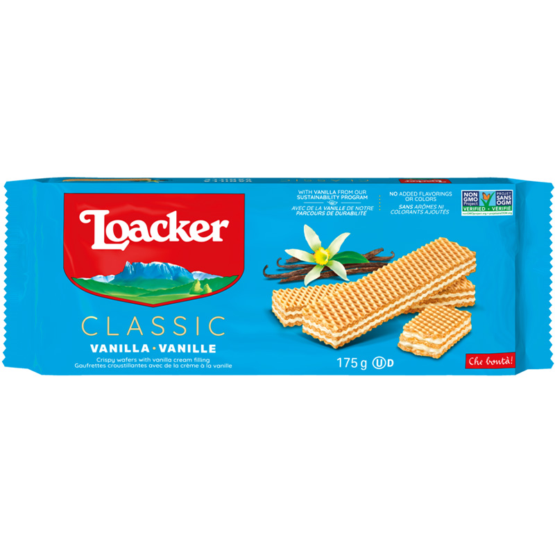 Gaufrettes croustillantes avec deux couches de crème à la vanille, élaborée à partir de vanille 100 % de Madagascar issue de notre programme de durabilité. Sans arômes artificiels, sans colorants, sans conservateurs.